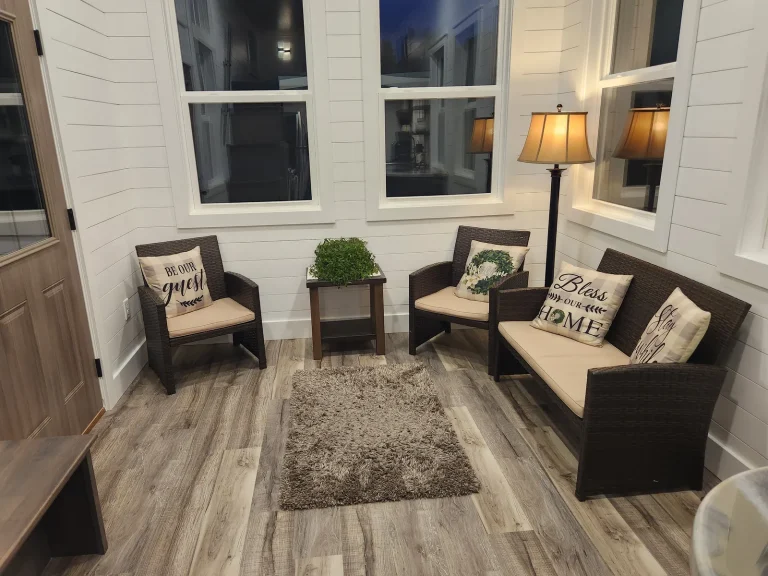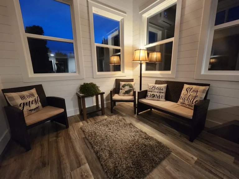 In order to build your tiny home to accommodate your needs, we need to know what utilities you have available and what your goal is for energy usage. Do you have electric, and if so, how big is the electrical service? What is the water availability? Do you want gas or propane appliances? Is there a septic option or do you want to consider a composting or incinerating toilet?