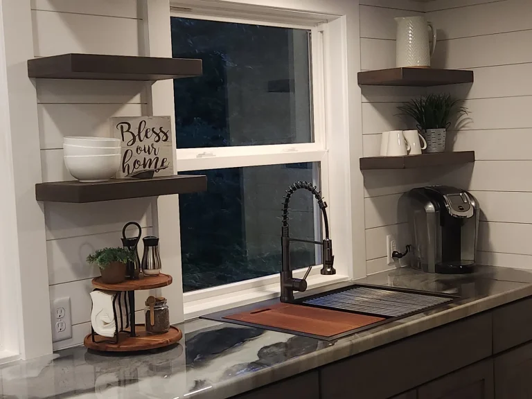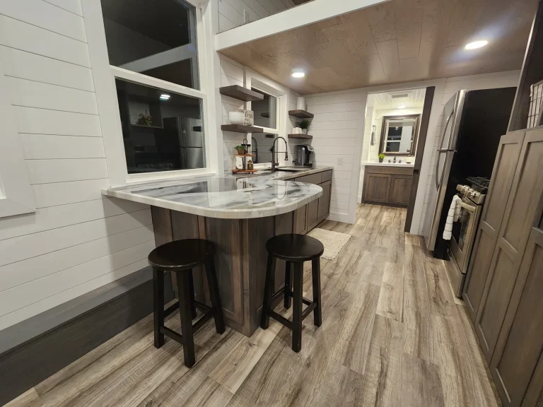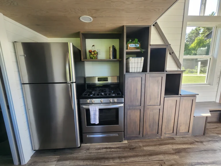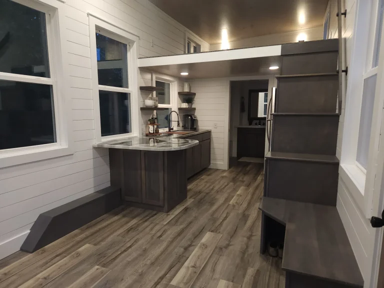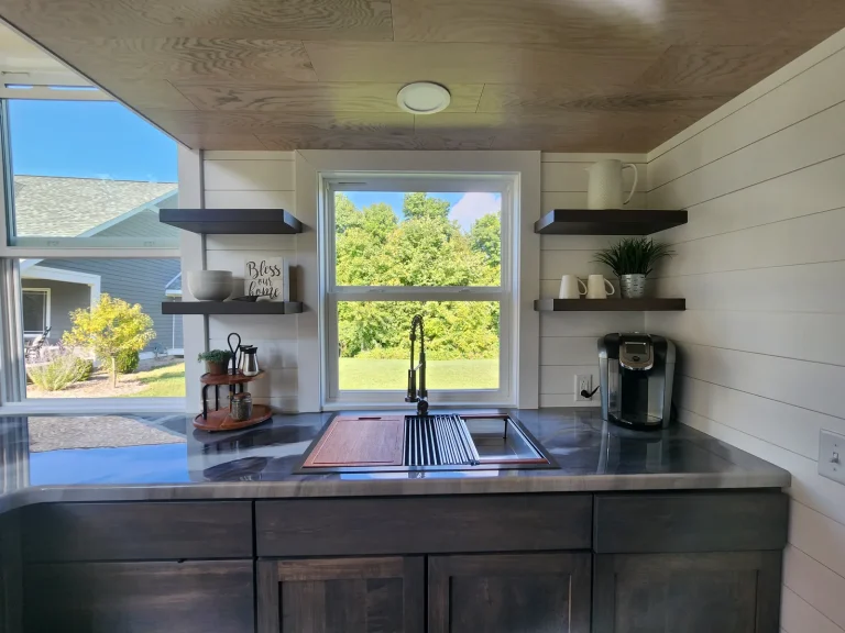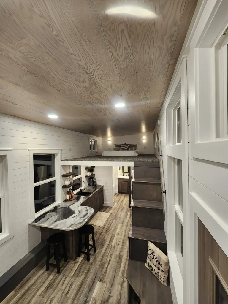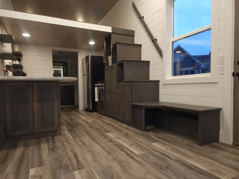 A tiny home has many of the same components as a conventional home including a kitchen, appliances, laundry center, and full bathroom. All cabinetry is built custom in order to maximize space as ideally as possible. Our tiny homes are mostly built on trailers which cost roughly $12-16,000 before even starting the building process.
