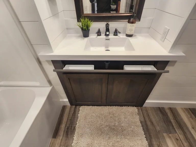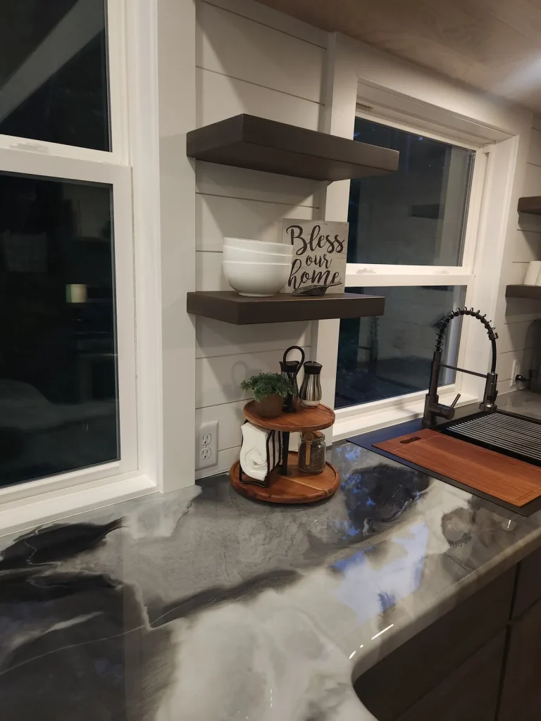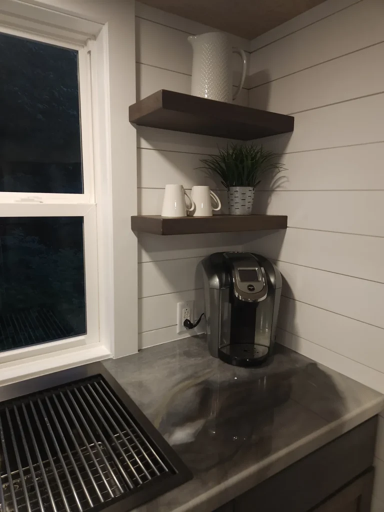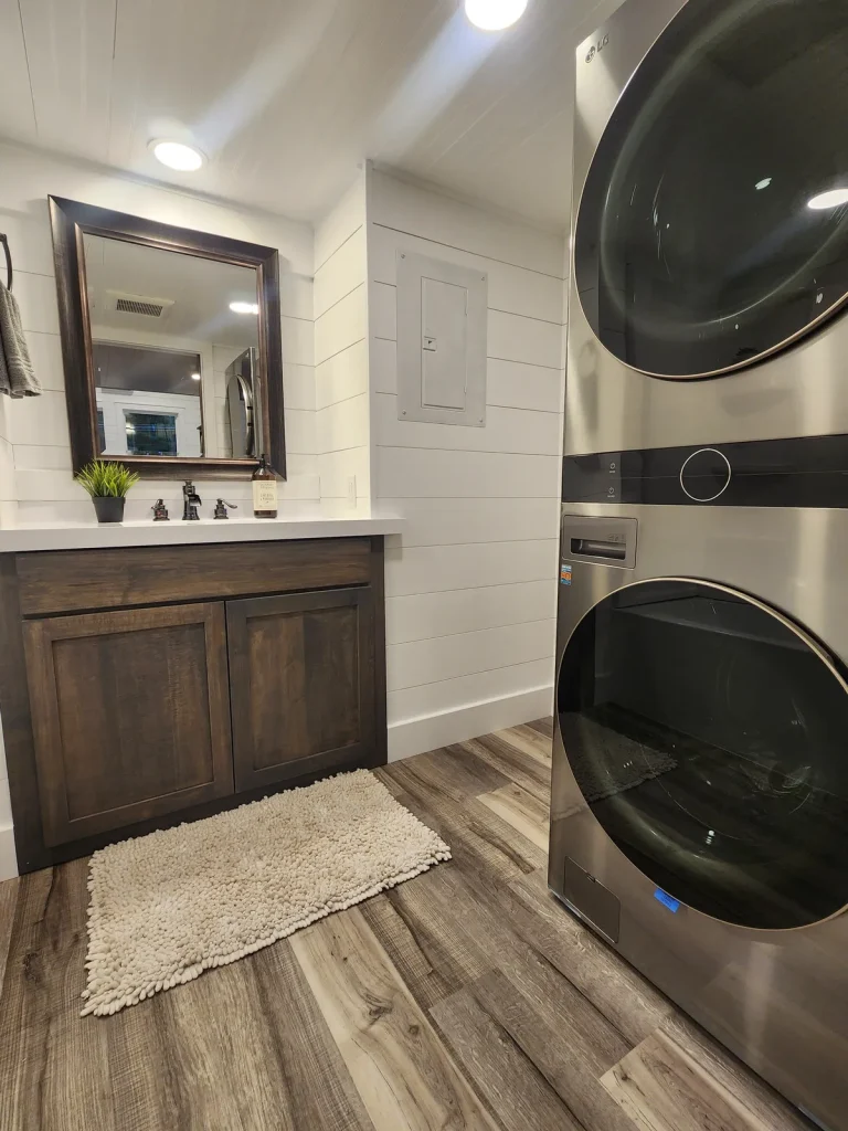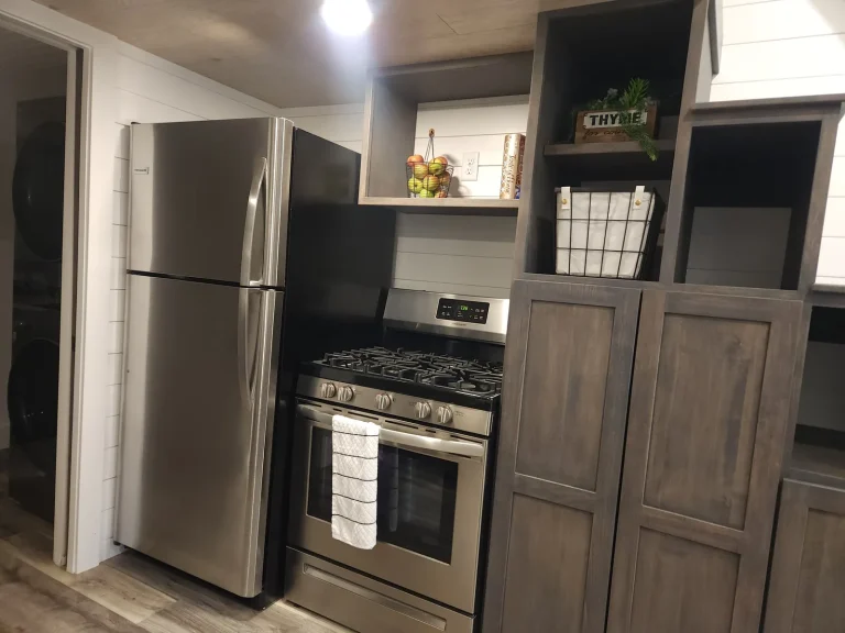 A tiny home has many of the same components as a conventional home including a kitchen, appliances, laundry center, and full bathroom. All cabinetry is built custom in order to maximize space as ideally as possible. Our tiny homes are mostly built on trailers which cost roughly $12-16,000 before even starting the building process.