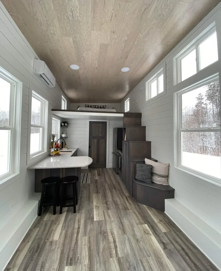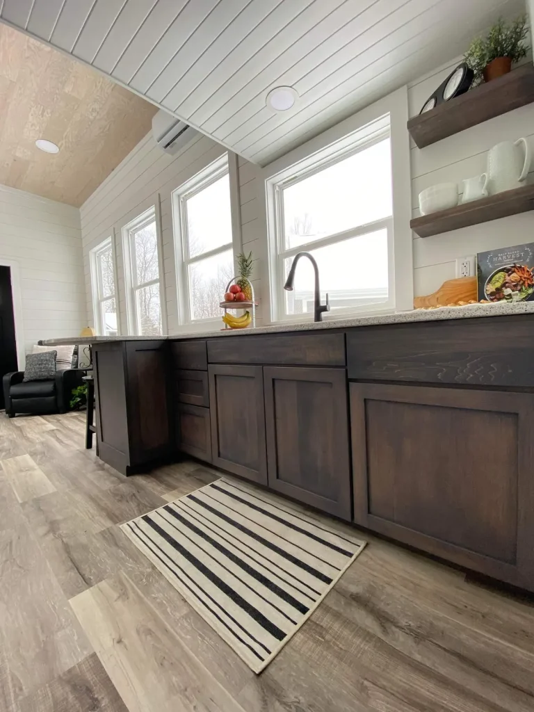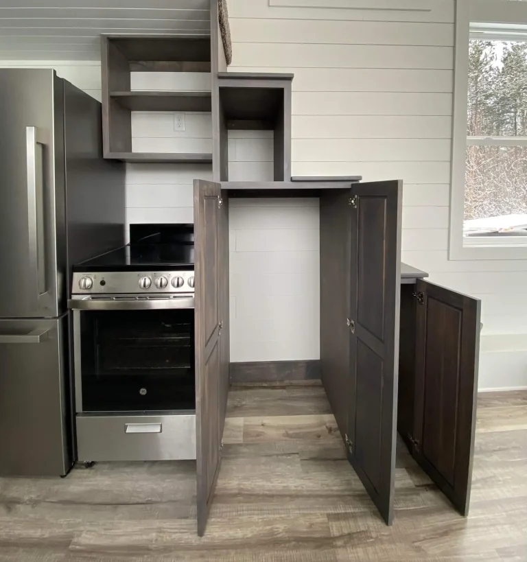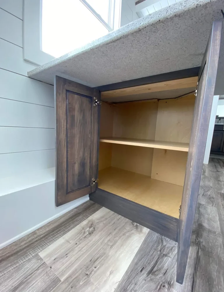 A tiny home has many of the same components as a conventional home including a kitchen, appliances, laundry center, and full bathroom. All cabinetry is built custom in order to maximize space as ideally as possible. Our tiny homes are mostly built on trailers which cost roughly $12-16,000 before even starting the building process.