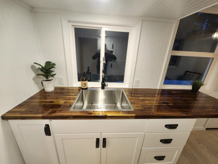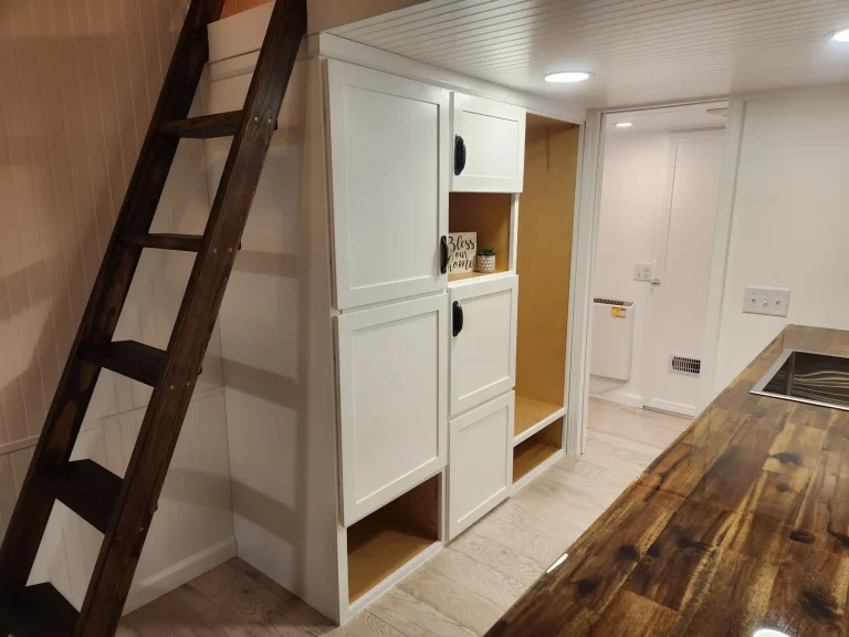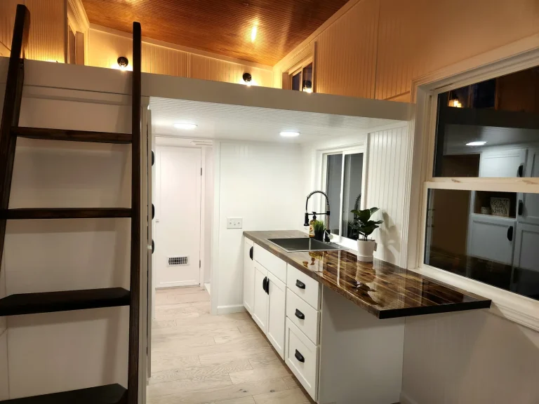 A tiny home has many of the same components as a conventional home including a kitchen, appliances, laundry center, and full bathroom. All cabinetry is built custom in order to maximize space as ideally as possible. Our tiny homes are mostly built on trailers which cost roughly $12-16,000 before even starting the building process.